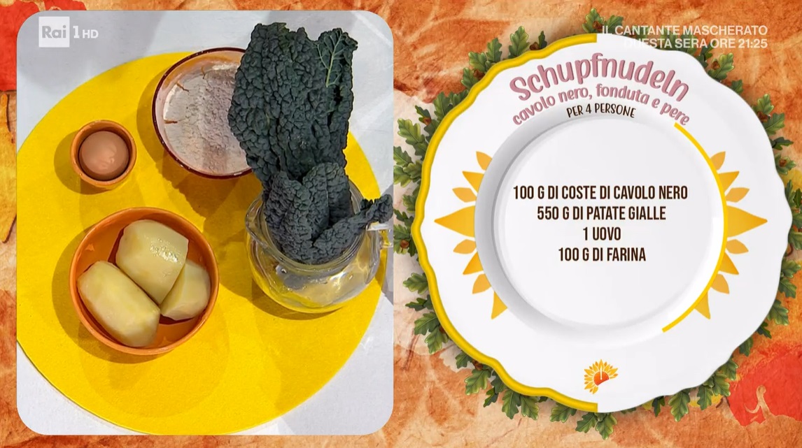 Barbara De Nigris promette di preparare ‘l’ultimo piatto invernale’, nonostante le temperature siano ancora piuttosto rigide, in tutta Italia. La cuoca altoatesina ci prepara un primo piatto, lo schupfnudeln cavolo nero fonduta e pere.