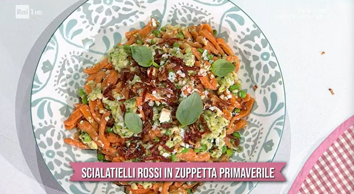 Gli Improta’s si ricongiungono, e Mattia dovrà spiegare a Mauro ed ai telespettatori il perchè della sua assenza ingiustificata… Ma veniamo al piatto, i due cuochi campani preparano un primo piatto primaverile, gli scialatielli rossi in zuppetta primaverile.