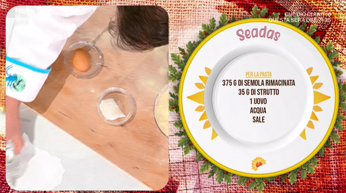seadasVoliamo in Sardegna, accompagnati dal rassicurante Michele Farru. Il cuoco dalla mano raffinata e dall’accento inconfondibile, propone il dolce simbolo dell’isola, le seadas.