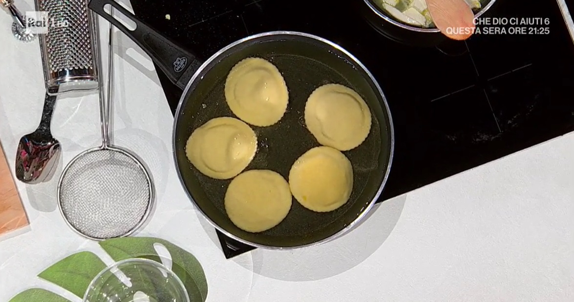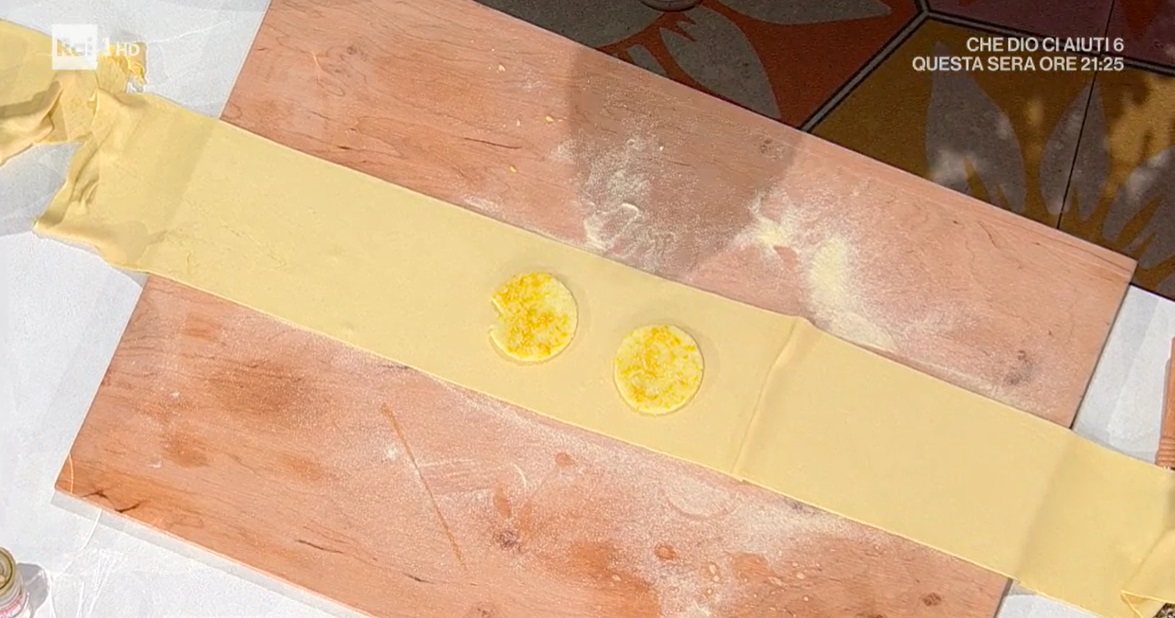 Tiriamo la sfoglia sottile e disponiamo sopra i dischi di formaggio. Copriamo quest’ultimo con la sfoglia, che facciamo aderire per bene, in modo da far uscire tutta l’aria. Ritagliamo le seadas con un coppapasta. Possiamo prepararle anche il giorno prima e conservale in frigorifero poco prima della frittura.