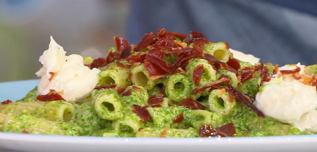 Bis per Daniele Persegani, che dopo il sedani al pesto di rucola dell’inizio (qui), torna in cucina per preparare un primo piatto veloce e goloso, perfetti per i mesi estivi, ovvero i sedani al pesto di rucola.
