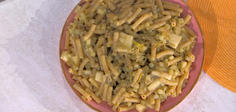 Scoliamo la pasta e la saltiamo in padella con le patate e la provola a pezzettoni. Dopo un paio di minuti, uniamo la crema di carciofi e saltiamo ancora qualche istante.