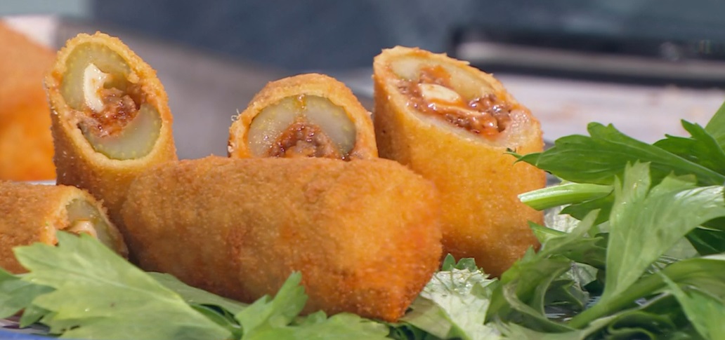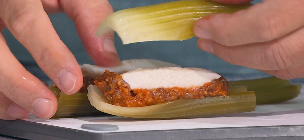 In questo inizio d’autunno particolarmente uggioso, perlomeno nel Nord Italia, il piatto e l’ironia di Daniele Persegani ci scaldano il cuore. Il cuoco emiliano, oggi, promette una ricetta ‘filante’, ovvero quella del sedano ripieno e fritto.