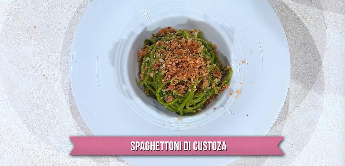 Una new entry nel cast del mezzogiorno, un cuoco giovane, ex concorrente di Masterchef, quindi fautore di una cucina ricercata e contemporanea, Gilberto Neirotti. Per il suo debutto, il cuoco propone gli spaghettoni di Custoza.
