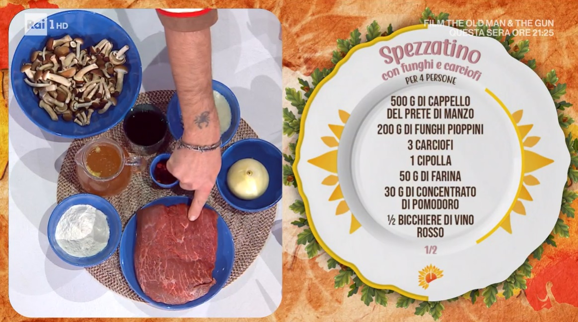 Tornano in cucina a ‘duellare’ a colpi di manicaretti Mauro e Mattia Improta, padre e figlio, nella vita e in cucina, dove è Mauro a istruire il giovane e talentuoso figlio. I due preparano un secondo piatto di casa Improta, lo spezzatino con funghi e carciofi.