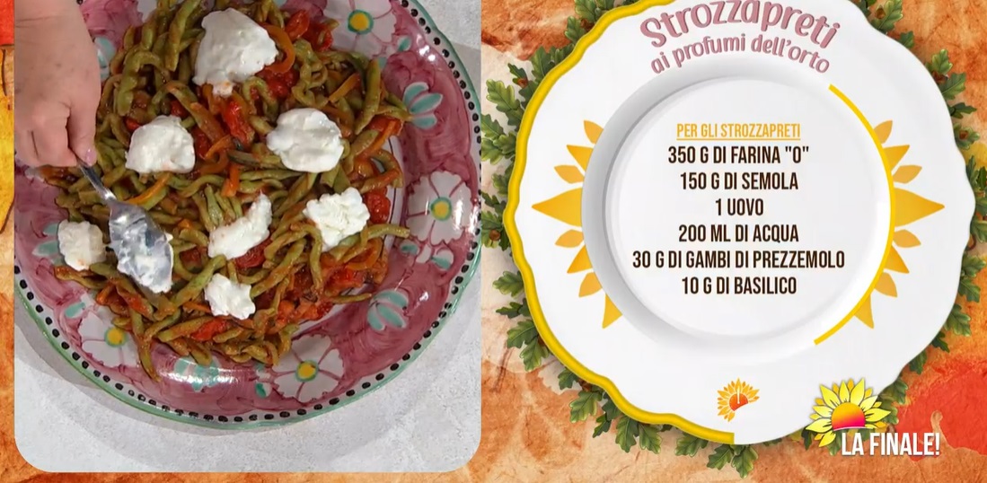 strozzapreti ai profumi dell'orto di zia Cri e PerseganiUltima puntata di questa fortunata stagione, dedicata agli amici dell’Emilia Romagna, recentemente colpiti dall’alluvione. Per questo, in cucina ci sono gli emiliani doc Persegani e zia Cri, che preparano gli strozzapreti ai profumi dell’orto.