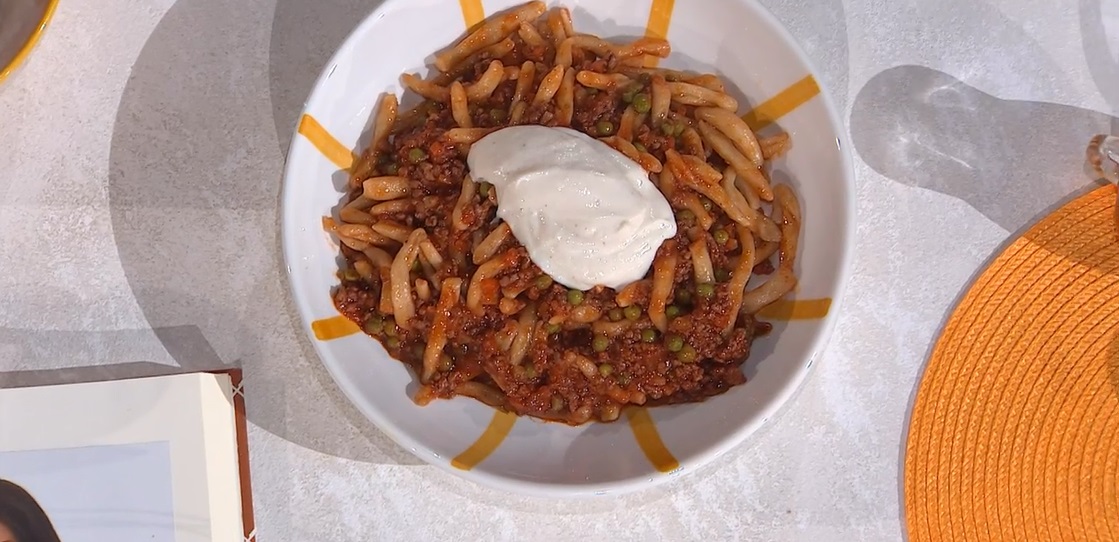 Francesca Marsetti, anche questo martedì, coadiuva Angela Frenda nel racconto di una vita straordinaria, già in tema sanremese, quella di Laura Pausini. In suo onore, Francesca prepara un primo romagnolo, gli strozzapreti al ragù di piselli.