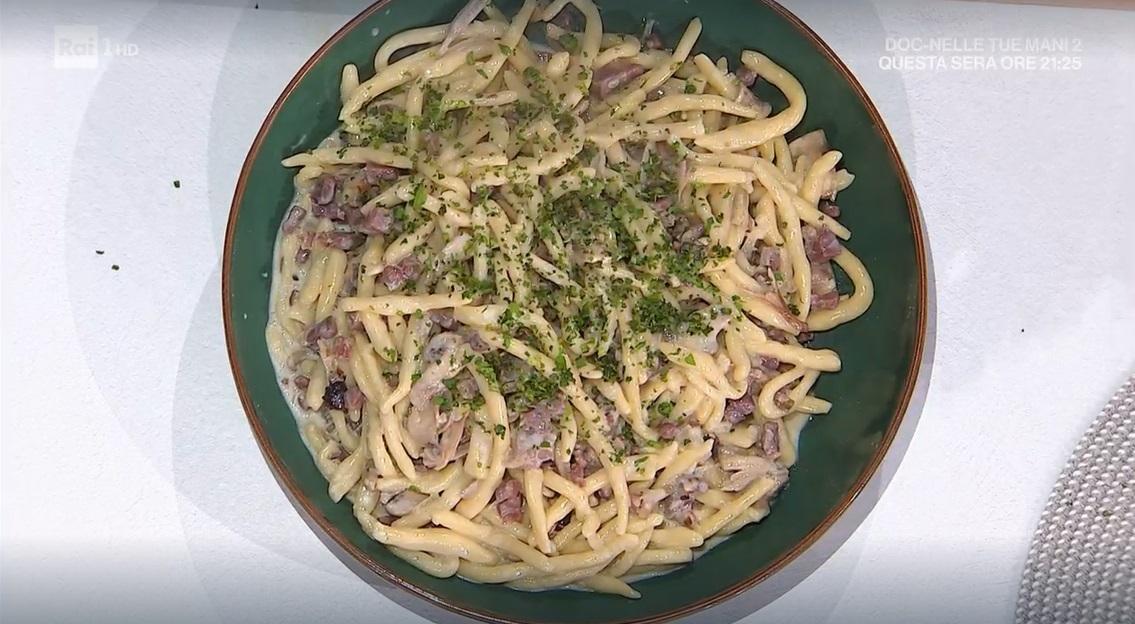 Lessiamo gli strozzapreti, li scoliamo e li saltiamo in padella con il condimento. Mantechiamo con il formaggio grattugiato ed il prezzemolo tritato.