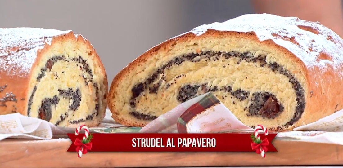 - Ripieno: 100 g semi di papavero macinato, 50 g pan di Spagna, 50 g pangrattato, 50 g zucchero, 50 g miele, 180 ml latte bollente, 30 ml rum, 30 g uva passa, scorza di 1 limone, 1 uovo