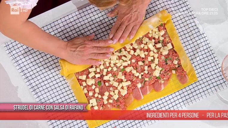 Puntata tutta al femminile, in occasione dell’ormai prossima festa della mamma, che si celebra domenica. Dopo il dolce scenografico di Nat Cattelani (qui la ricetta), arriva dalle sue montagne, direttamente nel bosco di Antonella, Barbara De Nigris, per preparare una versione salata dello strudel. Ecco lo strudel di carne con salsa di rafano.