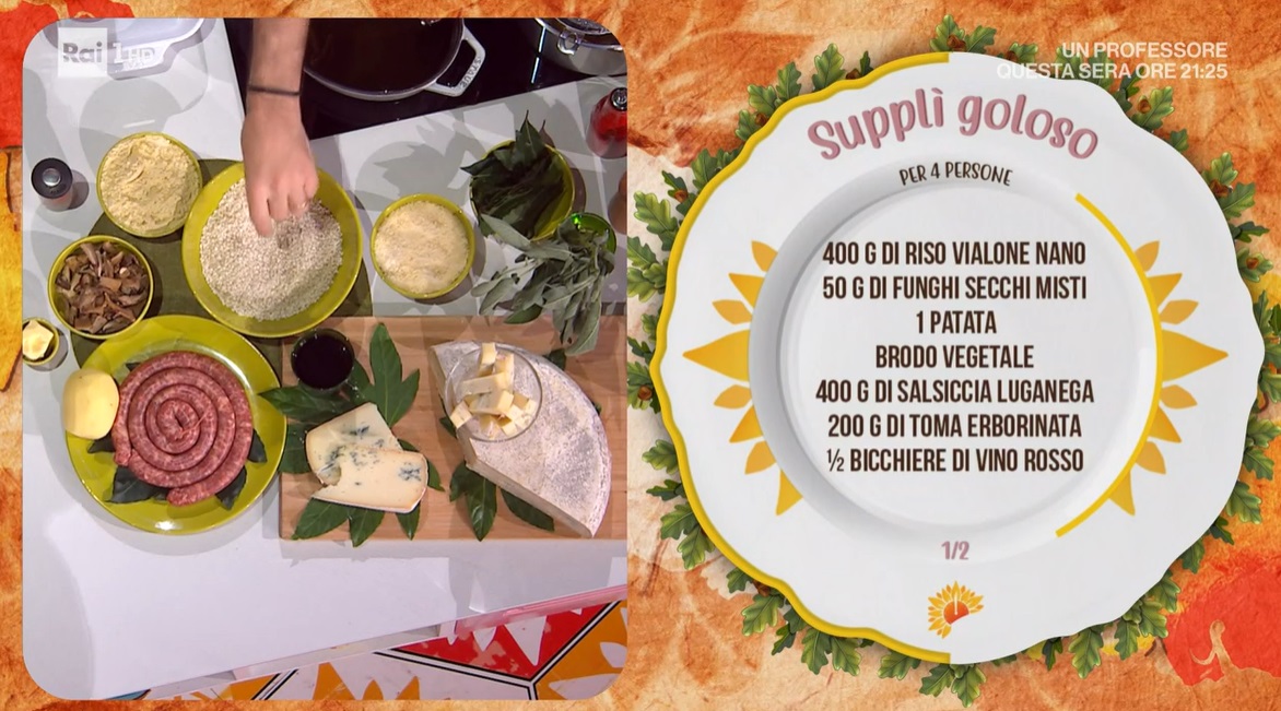 Il maestro dei risotti, Sergio Barzetti, propone una delle sue creazioni a base di riso, nel tentativo, sempre ben riuscito, di esaltarne le qualità. Oggi, in particolare, il cuoco lombardo prepara un classico romano, i supplì golosi.