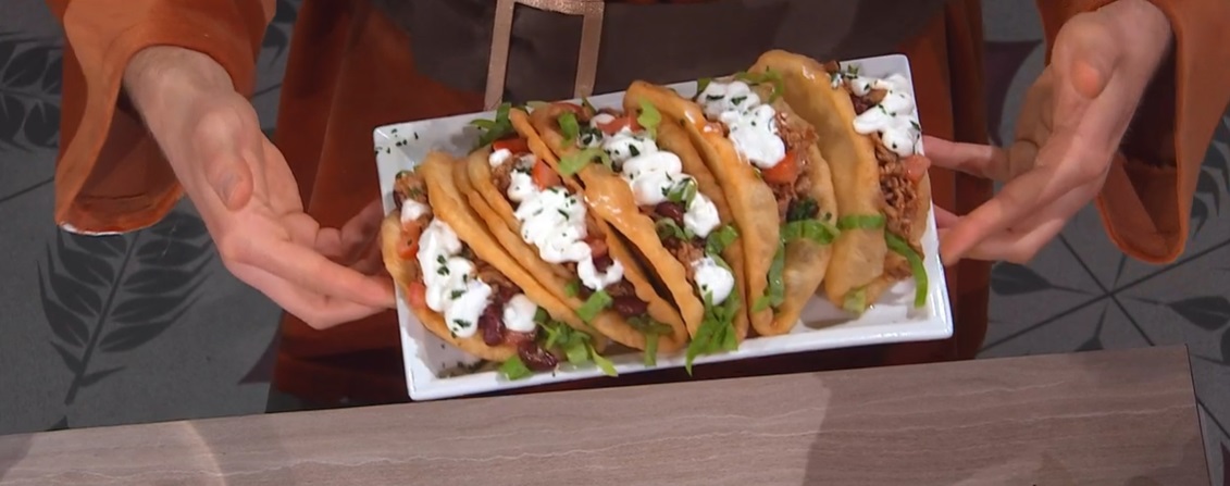 tacos di Fulvio MarinoAnche a Carnevale, oltre alla sfilata di fritti, sulla tavola campeggia il pane di Fulvio Marino. Il panettiere piemontese, oggi, prepara un golosissimo lievitato fritto, superfarcito, di origini messicane. Vediamo come preparare i tacos.