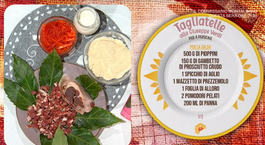 - 500 g pioppini, 150 g gambetto di prosciutto crudo, 1 spicchio d’aglio, 1 mazzetto di prezzemolo, 1 foglia di alloro, 2 pomodori pelati, 200 ml panna, 150 g formaggio grattugiato, olio evo, noce moscata, sale e pepe