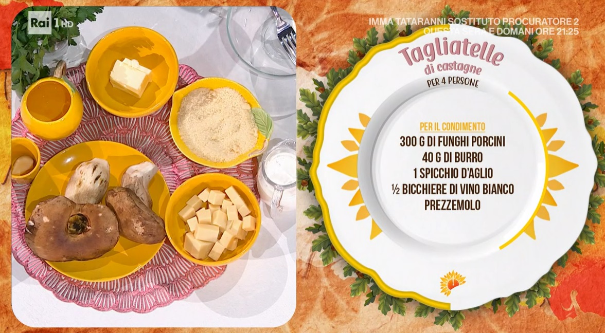 Dalle montagne al bosco è un attimo, per Barbara De Nigris. La cuoca altoatesina prepara un primo piatto dal sapore autunnale, con funghi e castagne. Ecco le tagliatelle di castagne.