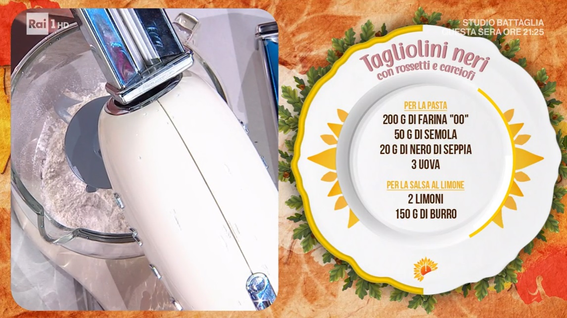 - 200 g farina 00, 50 g semola, 20 g nero di seppia, 3 uova