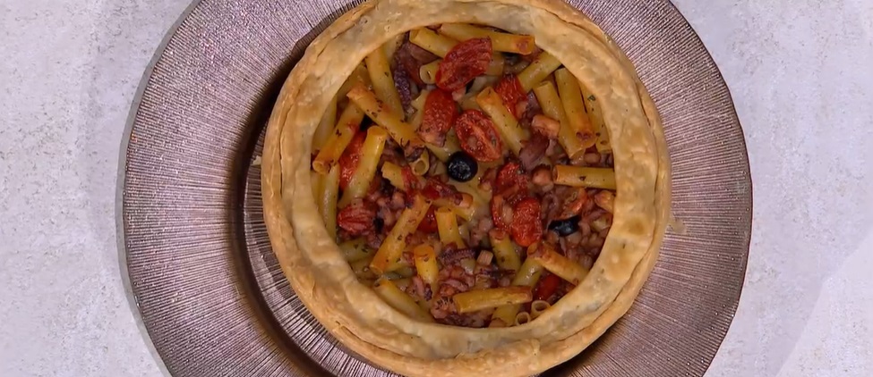 Sono state feste impegnative, in casa Improta. Ce lo raccontano Mauro e Mattia Improta, che nel frattempo preparano un piatto di mare, un ultimo primo piatto delle feste. Ecco il timballo di mare in crosta.