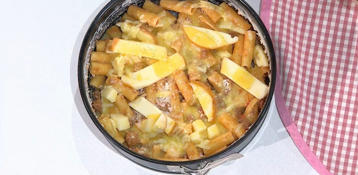 Imburriamo o ungiamo d’olio una tortiera a cerniera e la spolveriamo con il pane raffermo tritato grossolanamente. Distribuiamo metà della pasta condita sul fondo della tortiera, quindi spolveriamo con il pecorino grattugiato e copriamo con la scamorza a fette e ancora un po’ di uova sbattute con il provolone. Copriamo con la pasta rimasta, quindi versiamo sopra le uova sbattute rimaste, il ragù, il pecorino grattugiato ed il pane raffermo tritato. Cuociamo in forno caldo e statico a 200° per 35 minuti.
