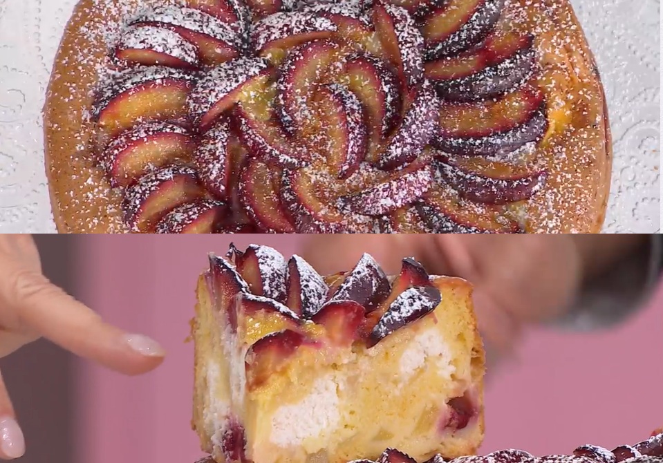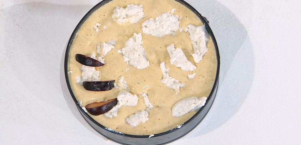 Versiamo l’impasto all’interno di una tortiera imburrata da 28/30 cm. Distribuiamo sopra la crema di ricotta a cucchiaiate e finiamo con le prugne avanzate. Cuociamo in forno caldo e statico a 175° per 40 minuti.