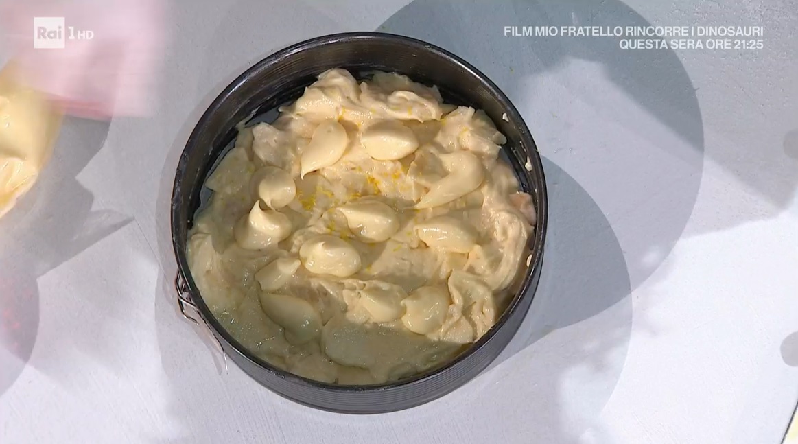 - 4 mele, scorza e succo di limone, 3 uova, 160 g zucchero, 40 ml olio di semi, 40 g burro, 150 g yogurt alla vaniglia, 320 g farina 0, 1 bustina di lievito per dolci