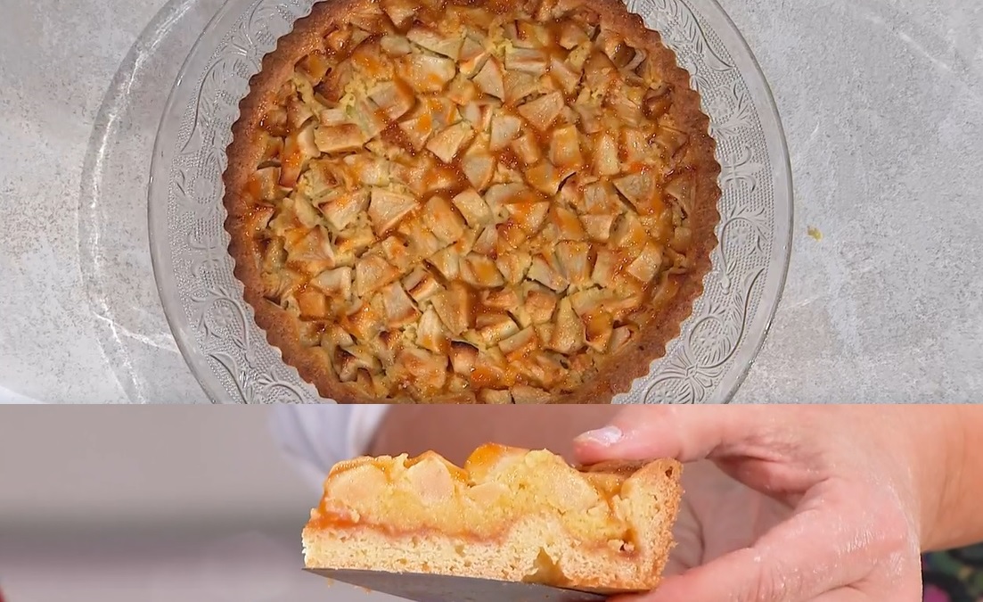 - Crema: 80 g burro, 80 g zucchero a velo, 80 g farina di mandorle, 1 uovo, 1 tuorlo, scorza di 1 limone, 30 g farina, 3 mele golden, succo di 1 limone, 200 g confettura di albicocche