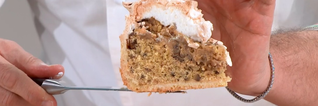 Nel primo giorno di dicembre, il mese del Natale e dei buoni propositi, Daniele Persegani si presenta più dolce che mai, con una preparazione dal sapore antico. Ecco la torta di noci meringata.
