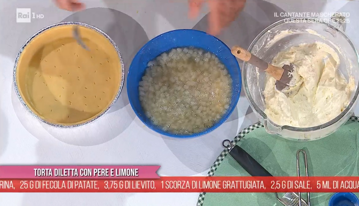 Dopo una settimana di stop, Sal De Riso torna a dedicare i suoi dolci agli spettatori più affezionati del mezzogiorno di Rai1. Oggi, in particolare, tocca ad una mamma 90enne, che riceve una dedica dal figlio ed una torta speciale da Sal. Ecco la torta diletta con pere e limone.