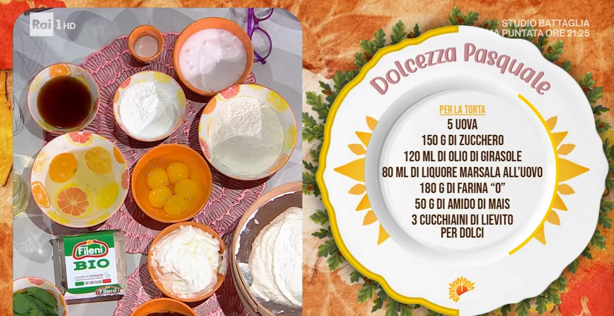 Natalia Cattelani apre ‘in dolcezza’ la puntata di oggi, con un dolce a tema pasquale. Un dolce ‘nuovo’, da affiancare a quelli della tradizione; una torta scenografica ed alta. Ecco la torta dolcezza pasquale.