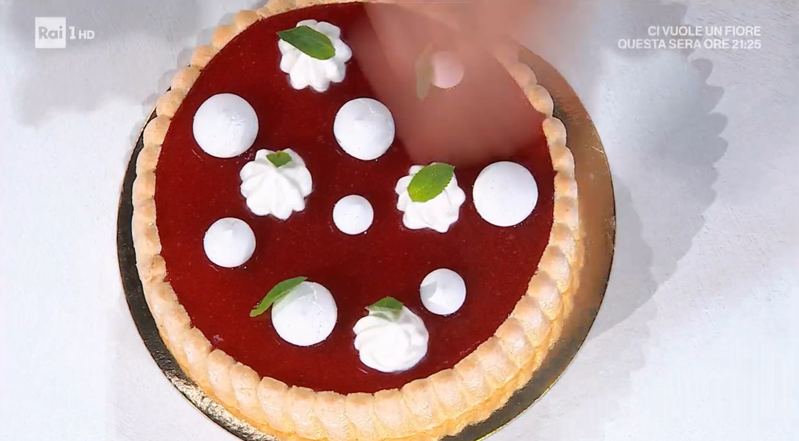 - Glassa: 250 g fragole, 5 g zucchero, 50 g glucosio, 100 g zucchero, 2,5 g pectina, 10 ml succo di limone, 10,5 g gelatina, 42 ml acqua