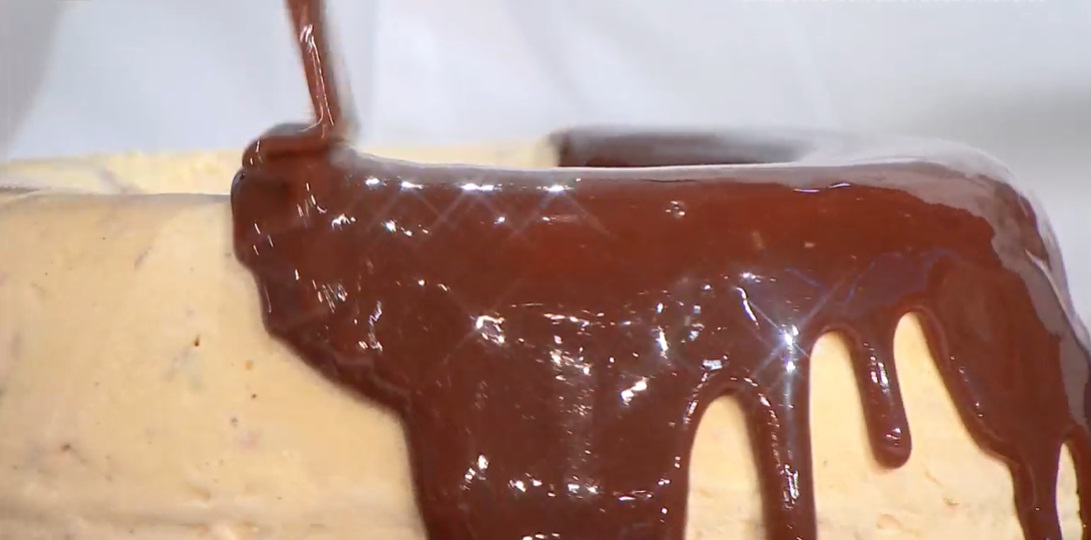 Sformiamo il dolce congelato, lo capovolgiamo su una grata e coliamo sopra la glassa. Decoriamo a piacere.