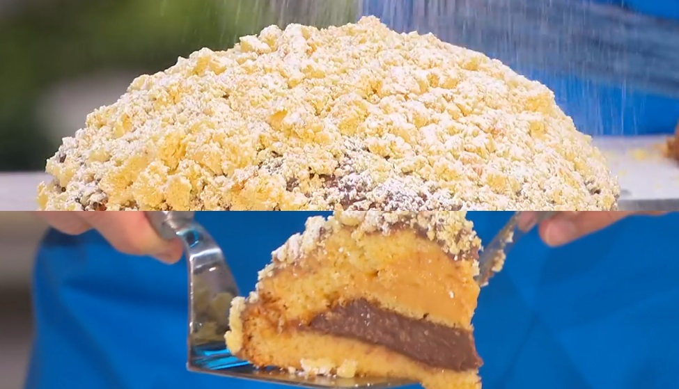 Dividiamo ciascun pan di Spagna in due dischi. Posizioniamo un primo disco sul vassoio, lo inzuppiamo con una bagna al rum e versiamo sopra la crema al cacao, formando una montagnetta al centro. Copriamo con il secondo disco di pan di Spagna, lo inzuppiamo e proseguiamo con la crema al marsala. Copriamo con l’ultimo disco di pan di Spagna e lo inzuppiamo. ‘Stucchiamo’ l’intera torta con la crema al cioccolato rimasta, quindi copriamo con le briociole ottenute dal quarto disco di pan di Spagna.