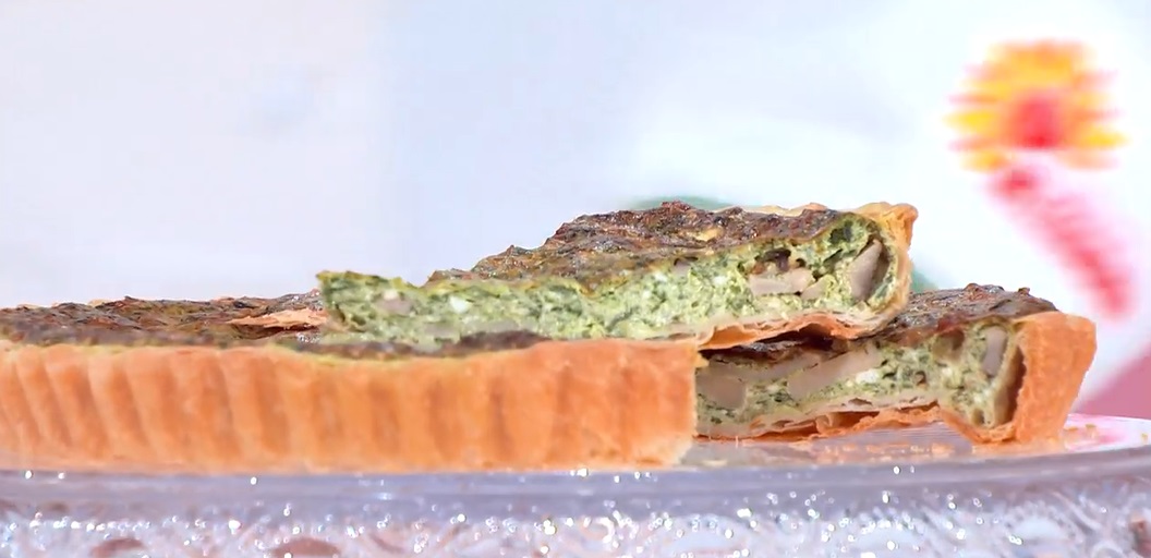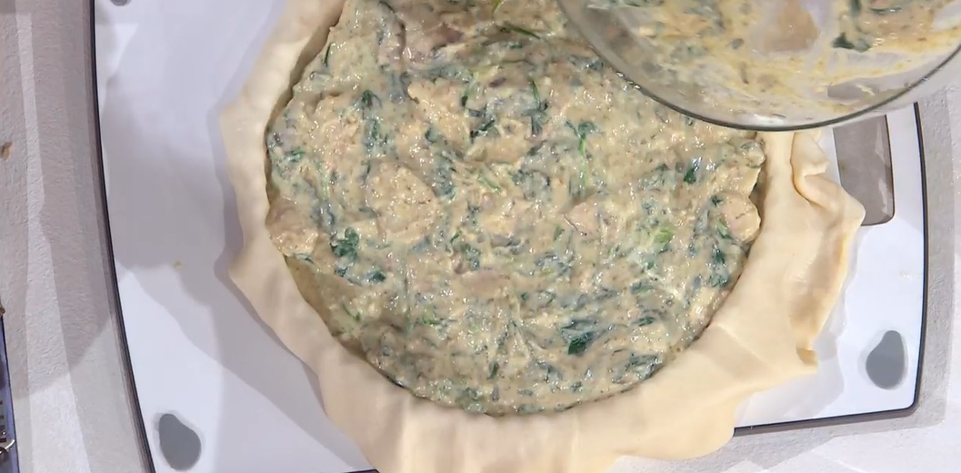 In una ciotola mettiamo le erbette, uniamo i funghi, la ricotta, la presciunseua (in alternativa possiamo usare lo yogurt greco mischiato ad altra ricotta), il formaggio grattugiato, tre uova, un pizzico di sale e di pepe e amalgamiamo bene tutto. Foderiamo con la sfoglia una tortiera per crostate, versiamo all’interno il ripieno e lo livelliamo. Inforniamo a 180⁰ per circa 40 minuti: la base dev’essere dorata.