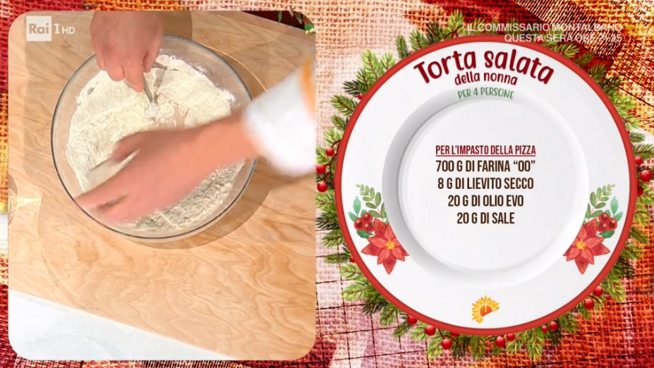 torta salata della nonna di Simone BuzziSimone Buzzi ci porta a Roma, oggi protagonista con le splendide immagini provenienti da Piazza di Spagna, scenario dell’omaggio del Papa alla Vergine Maria. Il cuoco romano prepara un piatto della vigilia di Natale, la torta salata della nonna.