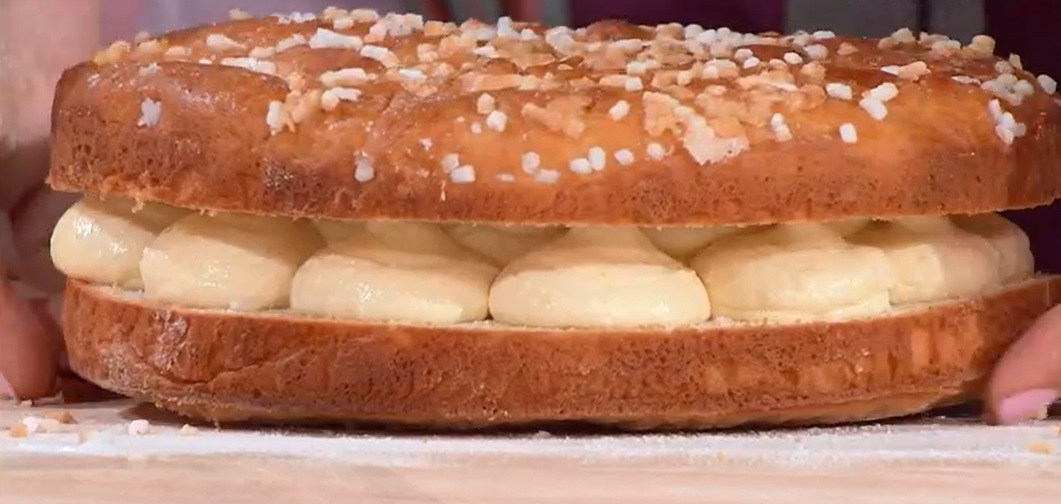 Tagliamo la brioche, ormai fredda, a metà e la farciamo con la crema.