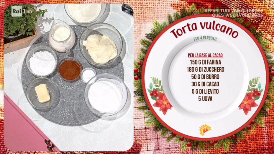 torta vulcano di Natalia CattelaniNatalia Cattelani non ci nega un dolce neanche a Santo Stefano. L’abilissima pasticcera casalinga ci prepara una torta per festeggiare il nuovo anno, ormai prossimo. Ecco, quindi, la torta vulcano.