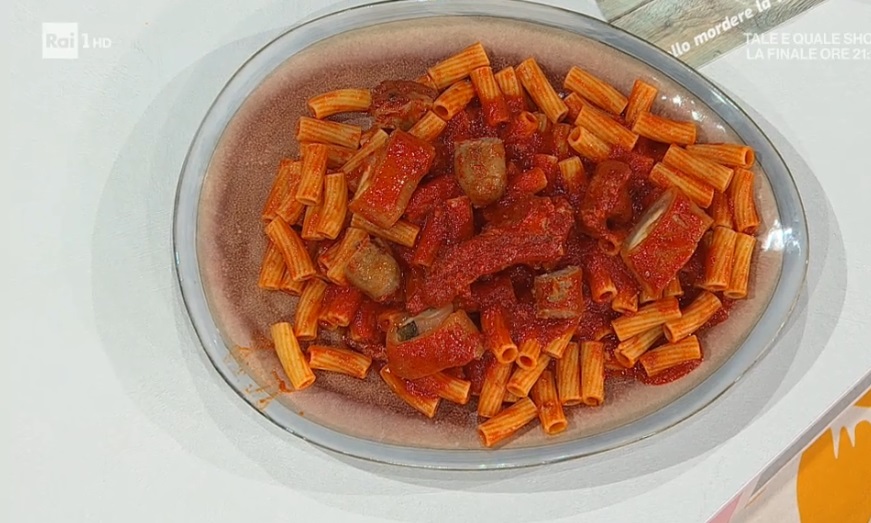 Scoliamo i tortiglioni e li condiamo con il sugo di carne, tenendo da parte i pezzi di carne per il secondo.