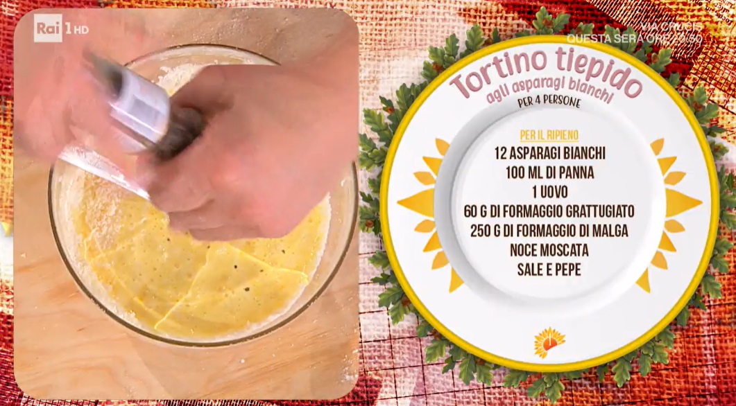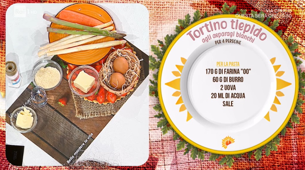 Al cospetto di un Alfio ringalluzzito, che non nasconde la sua passione per la chef trentina, Barbara De Nigris promette un piatto ricco ed originale, com’è nel suo stile, a base di asparagi bianchi. Ecco il tortino tiepido agli asparagi bianchi.