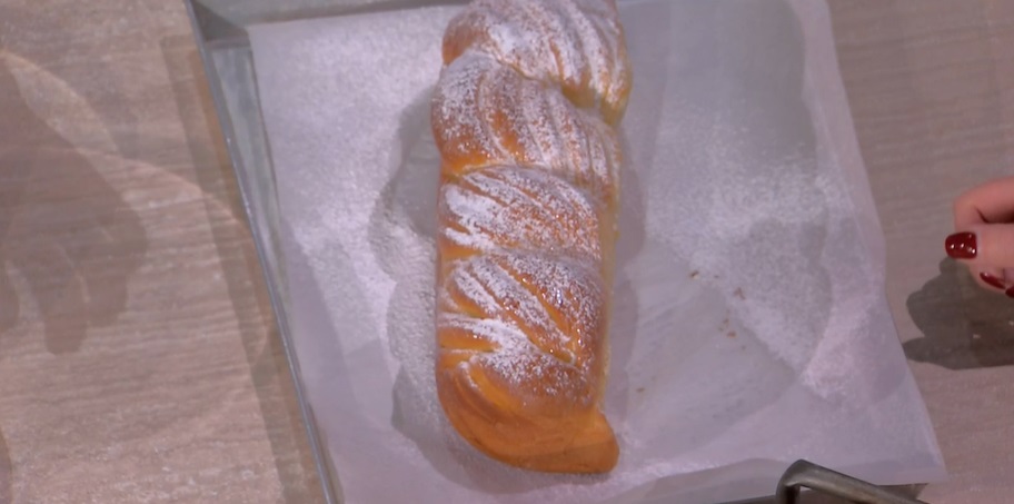 Il forno di Fulvio Marino, oggi, ospita un’ospite speciale, Simona Ventura. Sotto lo sguardo libidinoso della conduttrice di Chivasso, il panettiere piemontese prepara un lievitato dolce, perfetto per la colazione. Ecco le trecciole allo yogurt.