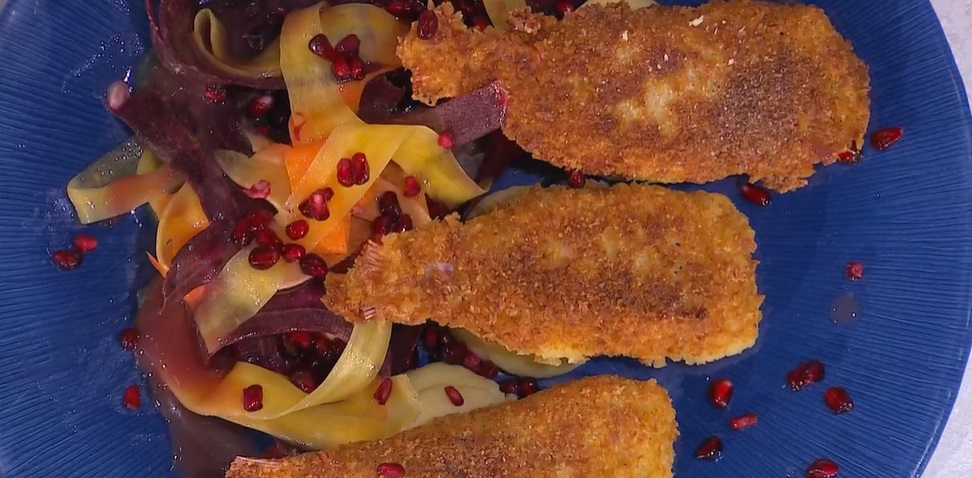 Carnevale è sinonimo di opulenza ed eccesso, anche in cucina. Lo sa bene Gian Piero Fava, che arriva in cucina con i suoi mille ingredienti per proporre un secondo piatto di pesce… fritto! Ecco le triglie fritte su coriandoli di verdure.