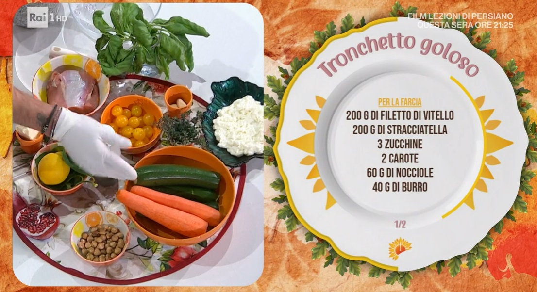 - 200 g filetto di vitello, 200 g stracciatella, 3 zucchine, 2 carote, 60 g nocciole, 40 g burro, timo, scorza di 1 limone, basilico, sale e pepe