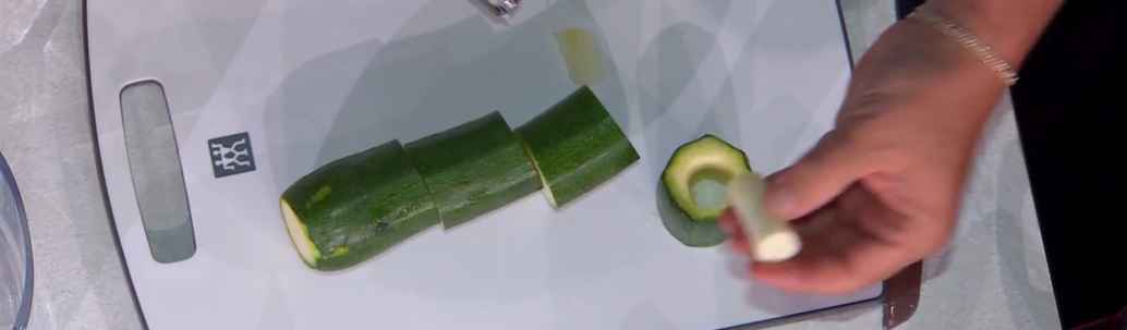 Sbollentiamo le zucchine per 4 minuti in acqua salata (quelle grandi). Le tagliamo a metà o in tre parti se più grandi e, con uno scavino, le priviamo della polpa, in modo da ottenere come delle sezioni di un tubo.