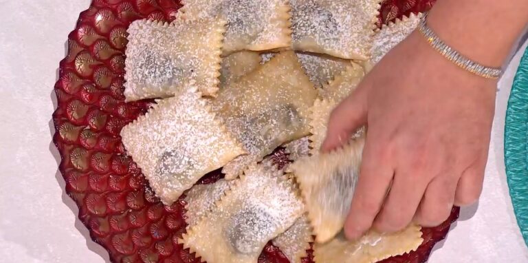 Disponiamo dei mucchietti di ripieno sulla sfoglia, quindi ripieghiamo quest’ultima sul ripieno, facendo uscire l’aria ed aderire la sfoglia. Ritagliamo i tortelli e li friggiamo in olio profondo (o strutto). Li scoliamo su carta assorbente e serviamo con zucchero a velo.