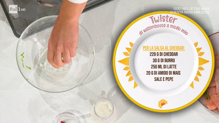 - Salsa: 220 cheddar, 30 g burro, 250 g latte, 20 g amido di mais, sale e pepe