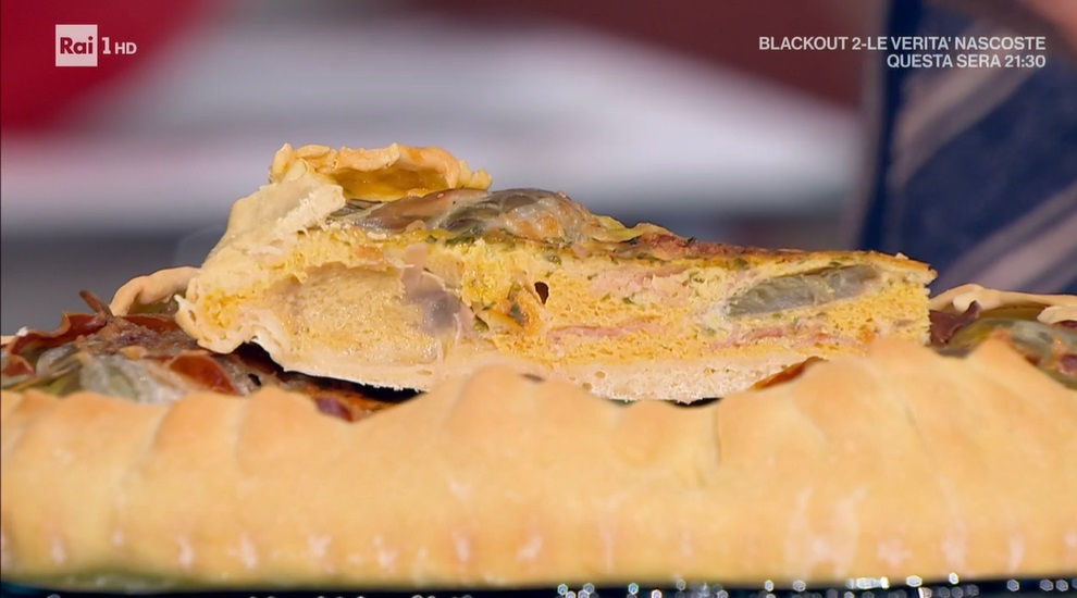una torta salata di Daniele PerseganiAnche oggi, tocca a Daniele Persegani ed alle sue deliziose ricette aprire il menu della puntata. Il cuoco emiliano ci ingolosisce con una torta salata che celebra un ortaggio di stagione. Ecco una torta salata ai carciofi.