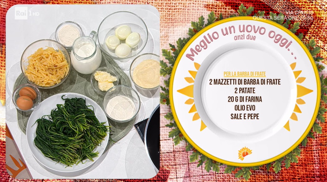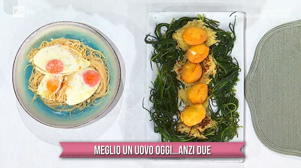 uova alla monachina e spaghetti del poverello di Mauro e Mattia ImprotaOgni venerdì, e questo non fa eccezione, nelle cucine del mezzogiorno di Rai1 si consuma la lotta tra il vecchio ed il nuovo, tra ‘attempati’ e giovani, tra padri e figli. A rappresentare questo epico duello Mauro e Mattia Improta, padre e figlio, cuoco e cuoco. I due si misurano sulla preparazione di un piatto a base di uova, squisitamente pasquali. Ecco “meglio un uovo oggi… anzi due“.