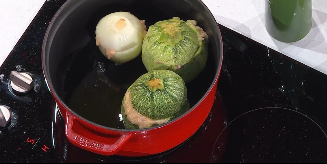 Farciamo gli involucri di verdure ancora crude con il ripieno. Disponiamo le verdure ripiene all’interno di una casseruola dai bordi alti, con un filo d’olio. Copriamo e lasciamo cuocere per 40 minuti a fiamma media (rilasceranno la loro acqua).