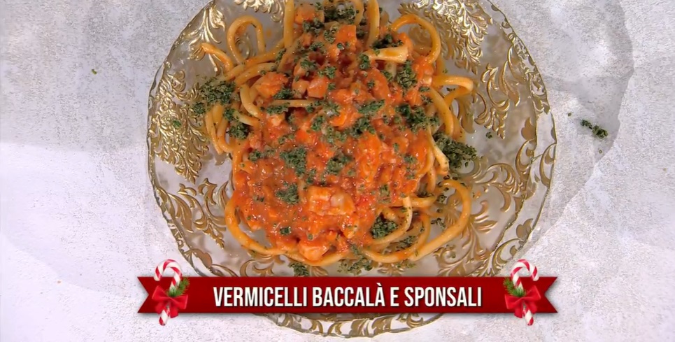 Facciamo un salto in Puglia, per scoprire cosa si serve in tavola in questi giorni di festa. A guidarci è Antonella Ricci, che porta il suo salento in cucina. La cuoca, oggi, prepara un primo piatto, i vermicelli baccalà e sponsali.
