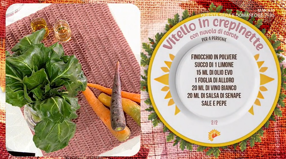 Tanta Puglia, oggi, in studio, con la ricetta di Marco Bianchi e con la cucina di Antonella Ricci, la chef stellata originaria del salento. Oggi, un secondo piatto raffinato e di origini francesi, reso ‘pugliese’ dalla talentuosa chef. Ecco il vitello in crepinette con nuvola di carote.