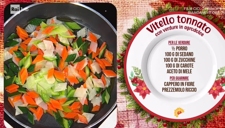 Gian Piero Fava racconta le sue feste, preparando un piatto imparato in gioventù, agli albori della sua carriera, ma amatissima anche da Antonella. Vediamo come preparare il vitello tonnato con verdure in agrodolce.