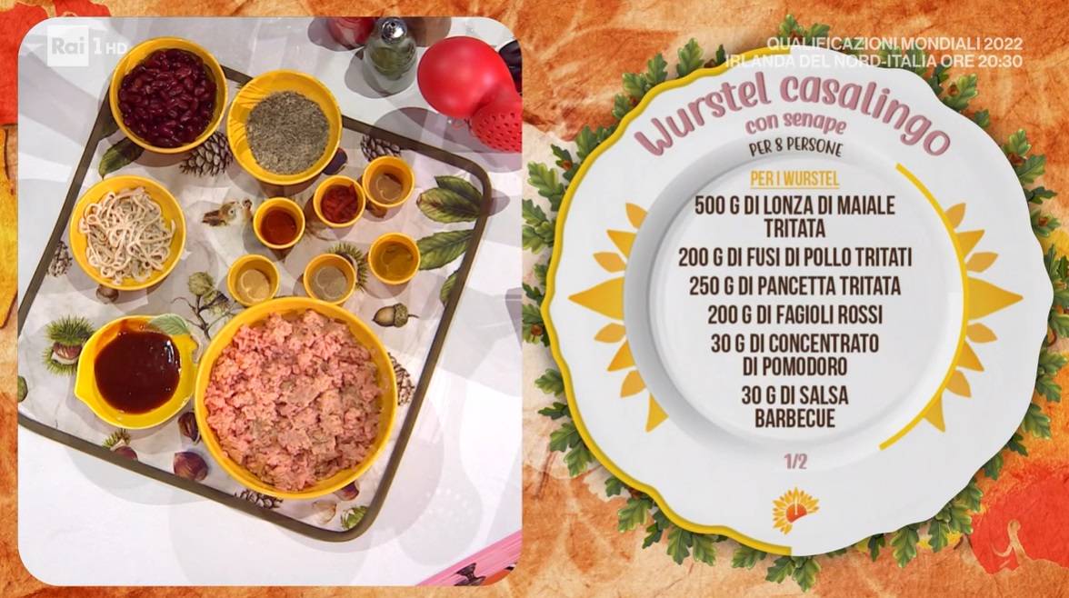 wurstel casalingo con senape di Barbara De NigrisUn inizio di settimana piacevolissimo, per i telespettatori di Rai1 e per Alfio, che accoglie con il consueto entusiasmo Barbara De Nigris. La cuoca di montagna, oggi, ci spiega come preparare in casa i wurstel casalingo con senape.