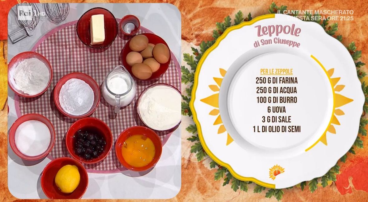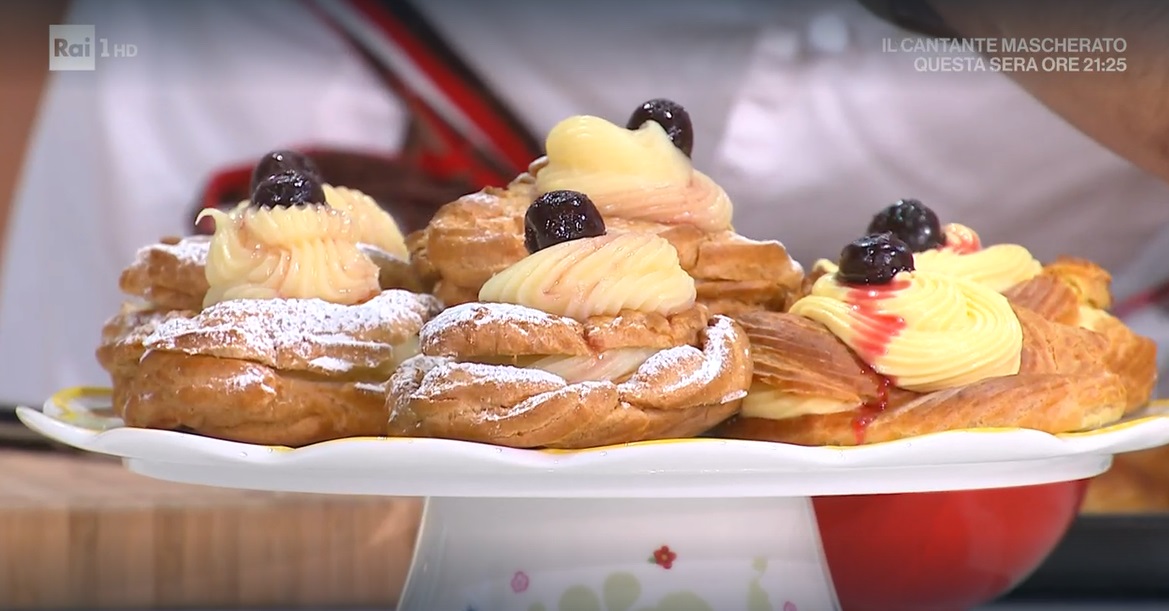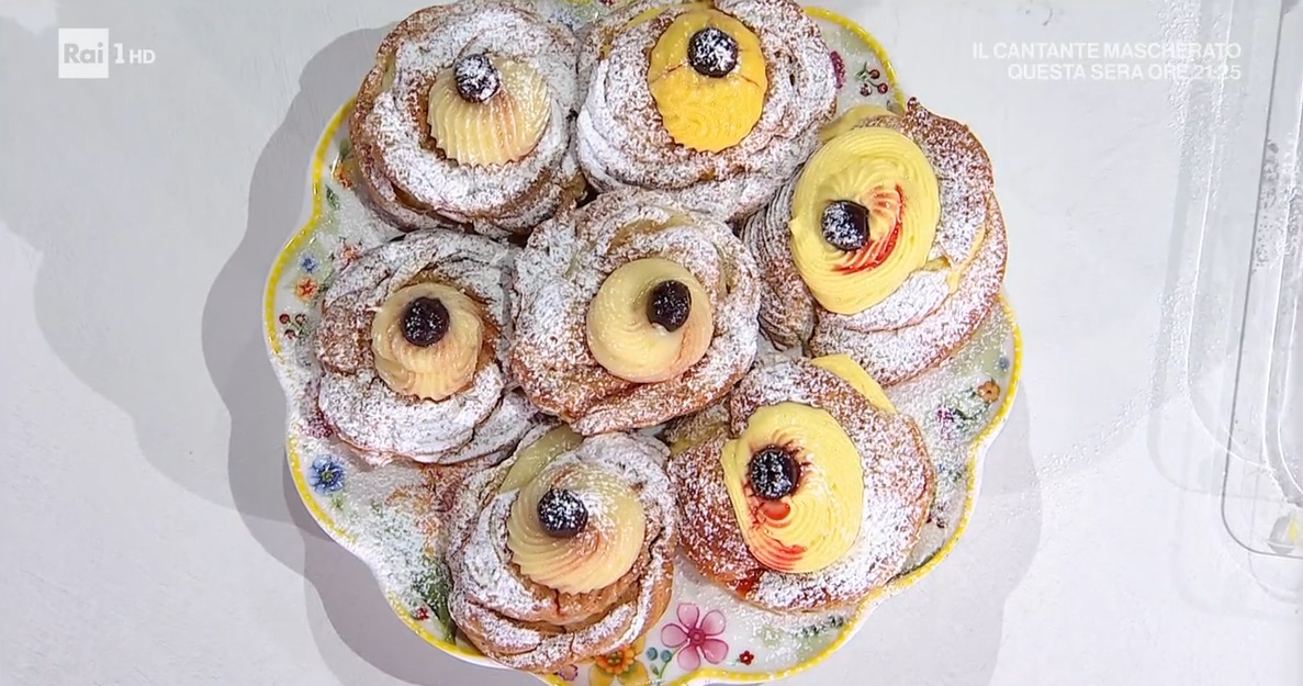 zeppole di San Giuseppe di Mauro e Mattia Improta‘Doppia dose’ di Improtas, questa settimana. Anche oggi, Mauro e Mattia Improta, infatti, monopolizzano la cucina di Rai1 per preparare il dolce simbolo della festa del papà, di origini partenopee. Ecco le zeppole di San Giuseppe.